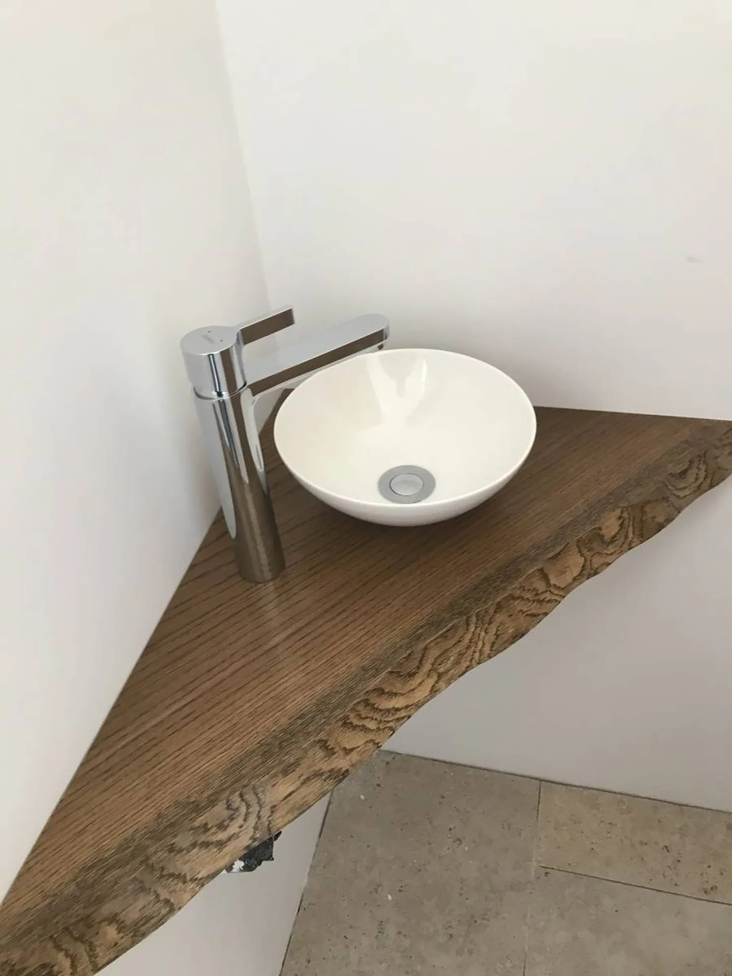 -Les cabinets de toilette ont été équipés de plan de vasque en chêne massif avec bord naturel